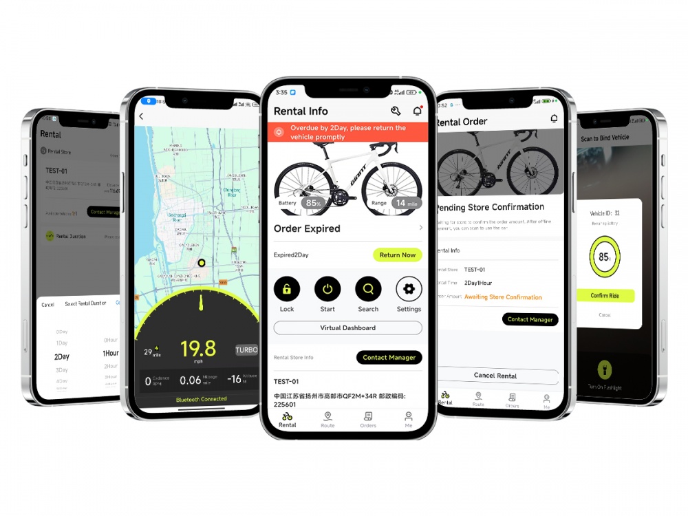 Vélo électrique connecté IoT, solution de flotte de location, avec logiciel, suivi GPS, contrôle à distance