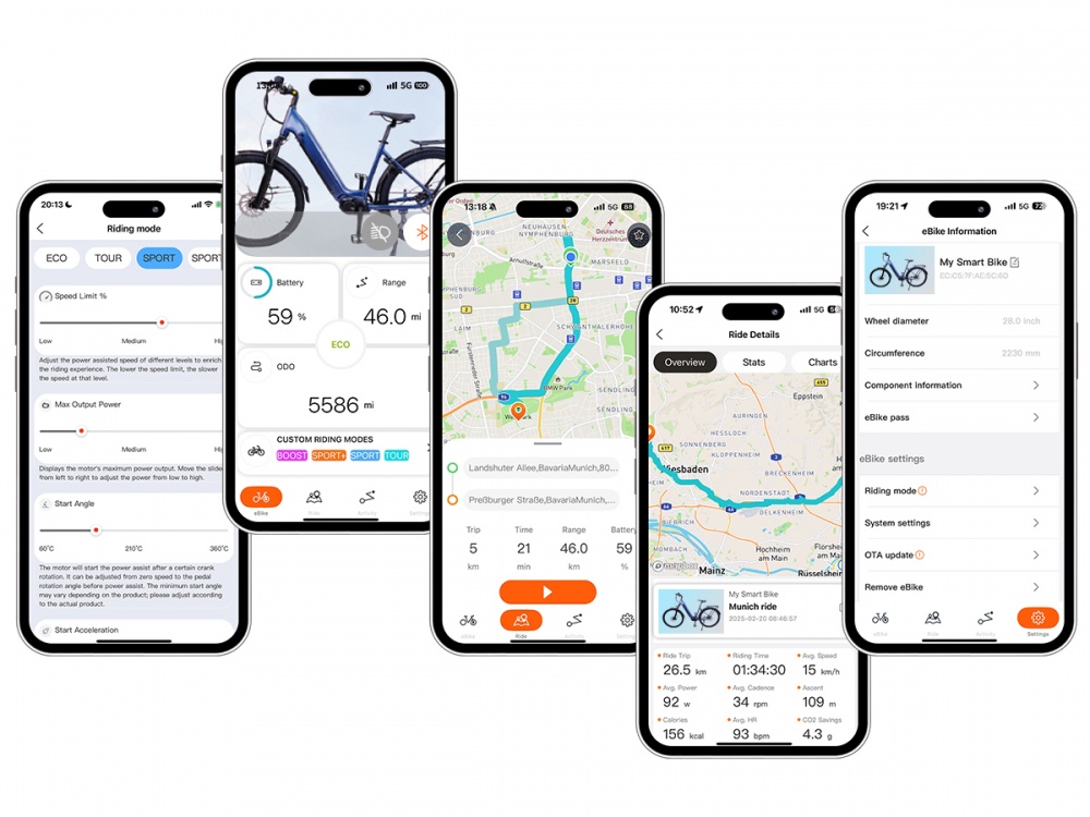 Connected for a safer and more enjoyable cycling journey with remote control,real-time tracking,personalized settings,navigation,and more,all through Bafang Go app–right on your hand.